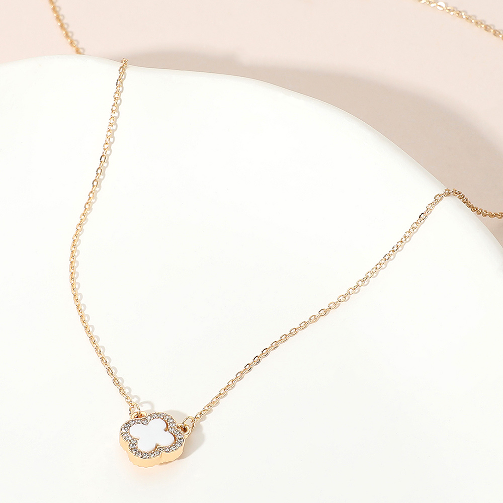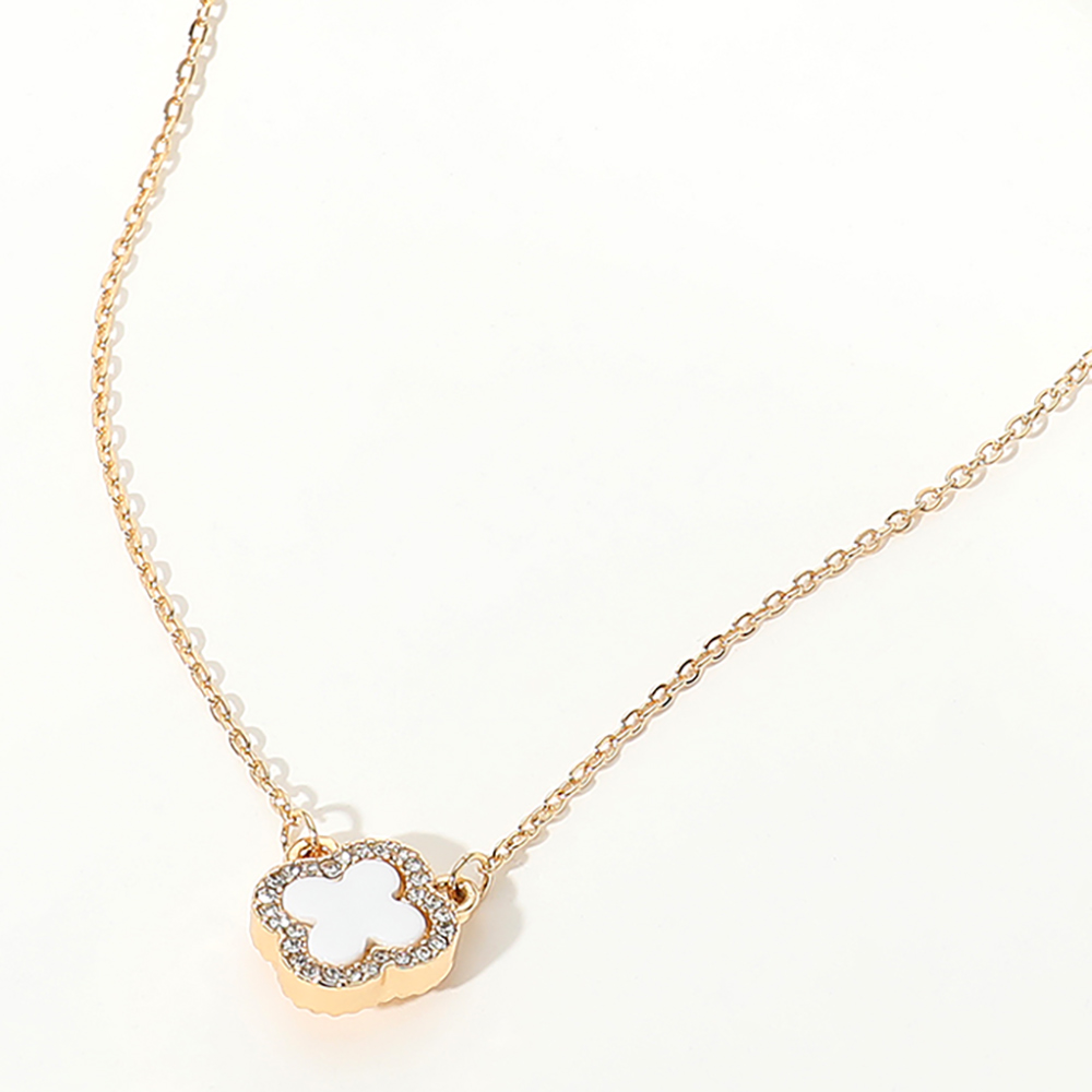 • This dainty quatrefoil charm pendant necklace showcases a single elegant motif framed by a shimmering border for a refined touch. Its minimalist design and adjustable chain make it perfect for layering or wearing solo, adding a hint of sophistication to both casual and dressy ensembles.