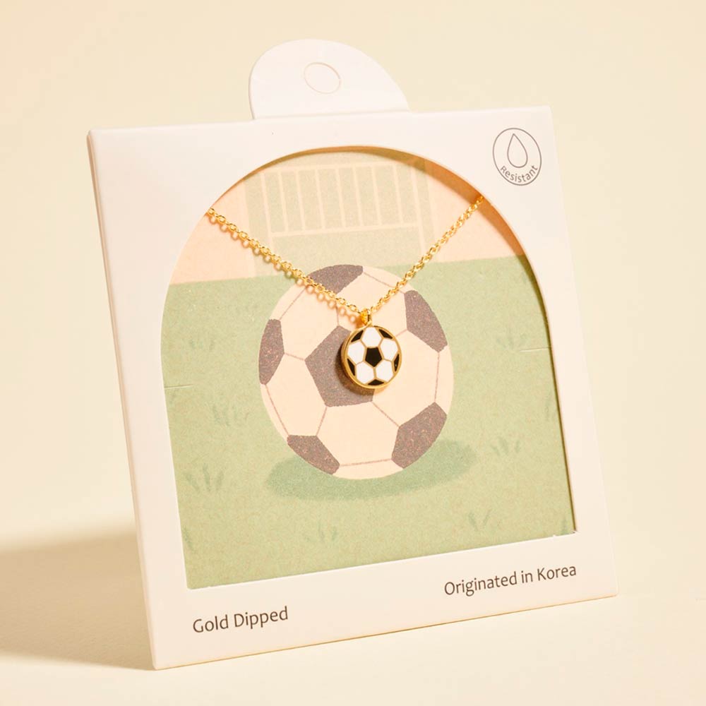Details • Necklace Size : 16" + 2" L • Pendant Size : 0.4" X 0.5" • Sport-inspired pendant necklace featuring a classic soccer ball motif designed for everyday wear and fan-focused styling. A playful accent for game day outfits, casual layering, and giftable sports jewelry collections. Ideal for boutiques, team spirit displays, and seasonal accessories with athletic charm. • Hypoallergenic • Made In Korea • Gold Dipped