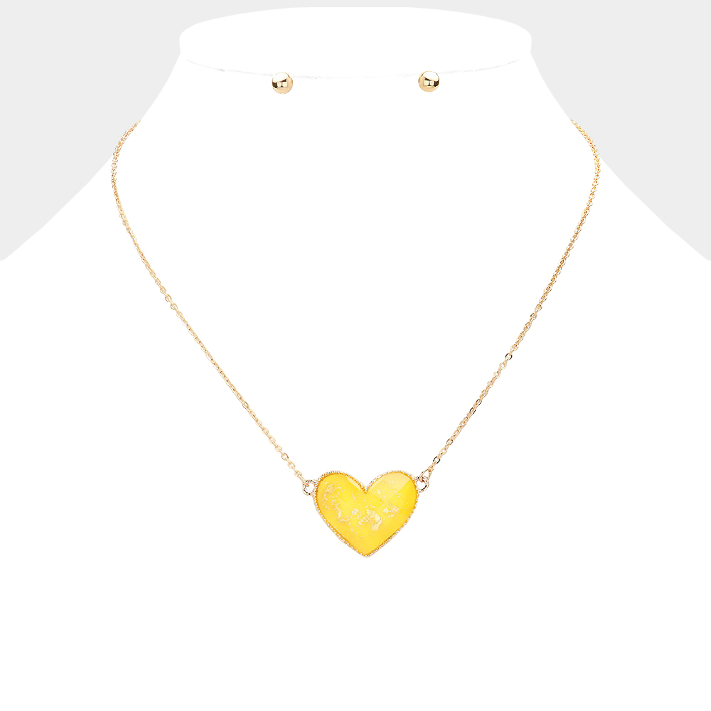 Heart Stone Pointed Pendant Antique Metal Necklace