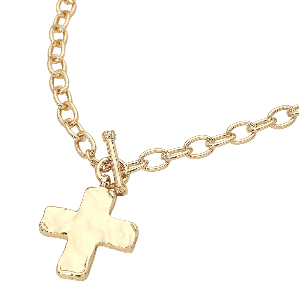 Hammered Metal Toggle Cross Charm Pendant Chunky Chain Necklace