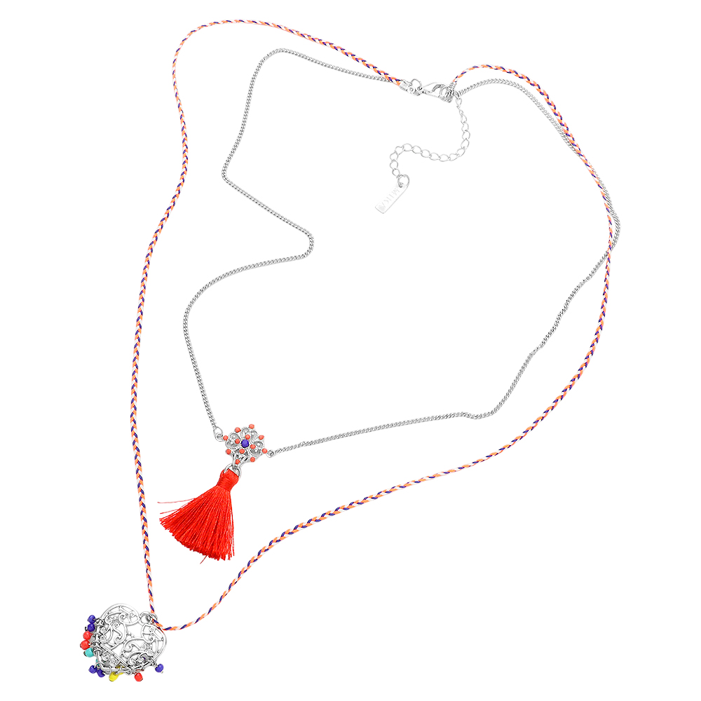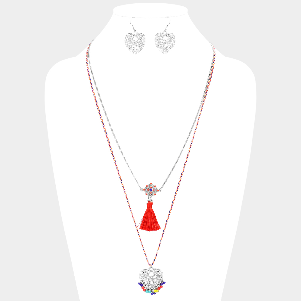 Arrow Star Moon Accented Metal Pendant Multi Layered Bib Necklace