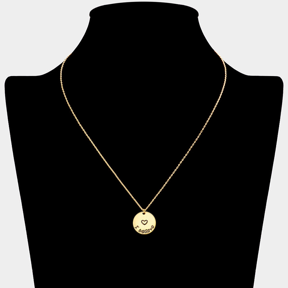 I Believe Heart Engraved Metal Disc Pendant Necklace Gift Bag Set I Believe Heart Engraved Metal Disc Pendant Necklace Gift Bag Set