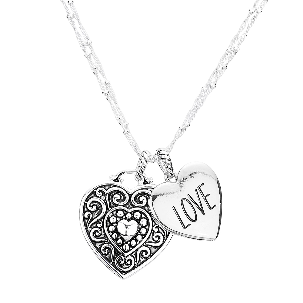 Antique Metal Boho Heart Stone Accent Stretch Bracelet