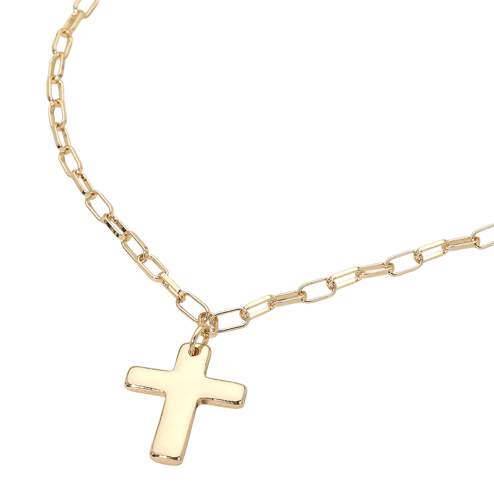Metal Cross Charm Pendant Paperclip Chain Necklace Metal Cross Charm Pendant Paperclip Chain Necklace Metal Cross Charm Pendant Paperclip Chain Necklace