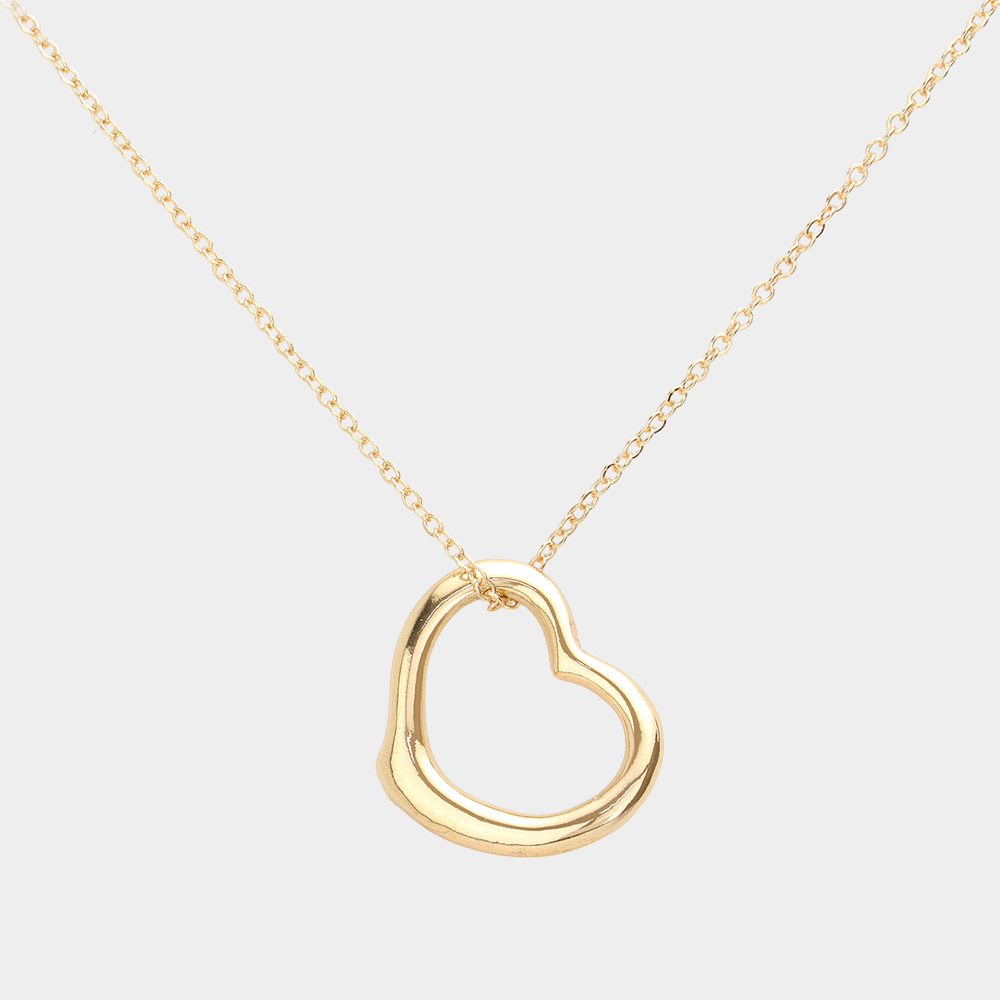 Details • Necklace Size : 15.5" + 2" L • Pendant Size : 0.8" X 1" • Elegant open heart pendant necklace featuring a smooth, minimalist heart charm on a delicate chain. A timeless accessory perfect for daily wear, gifting, or layering with other pieces. Adds a touch of romance and simplicity to any outfit. • Lead and Nickel Compliant