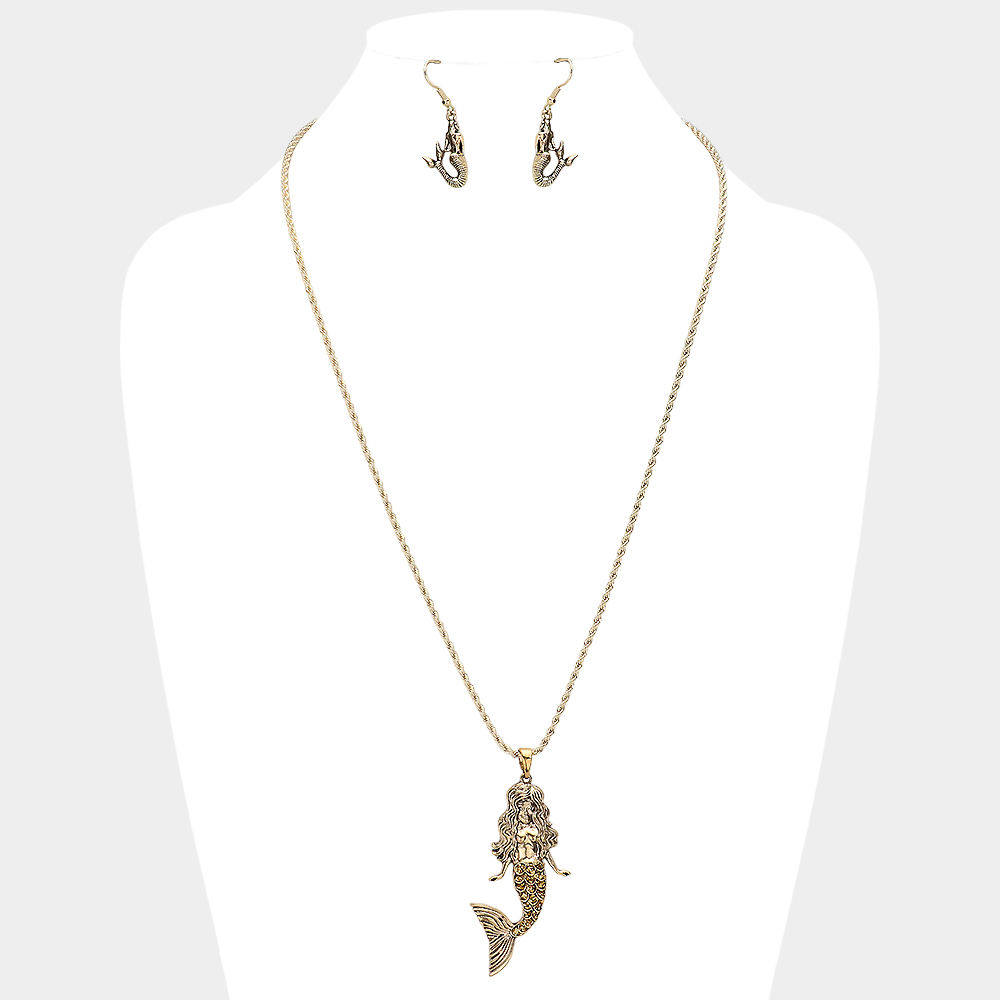 Enamel Shell Metal Mermaid Coral Pendant Necklace