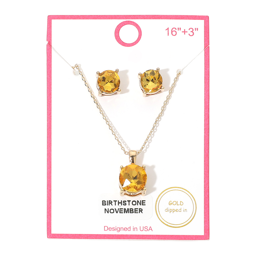 NOVEMBER - Gold Dipped Birthstone Pendant Necklace