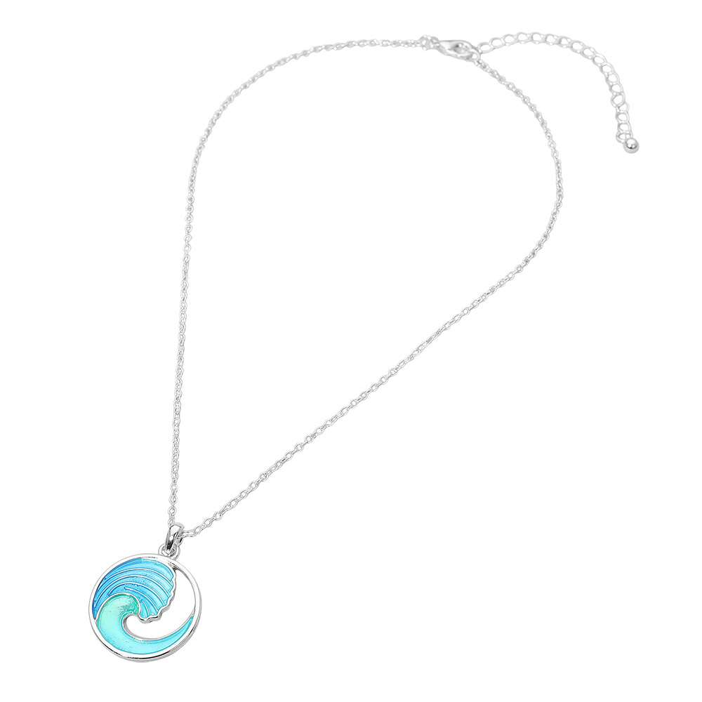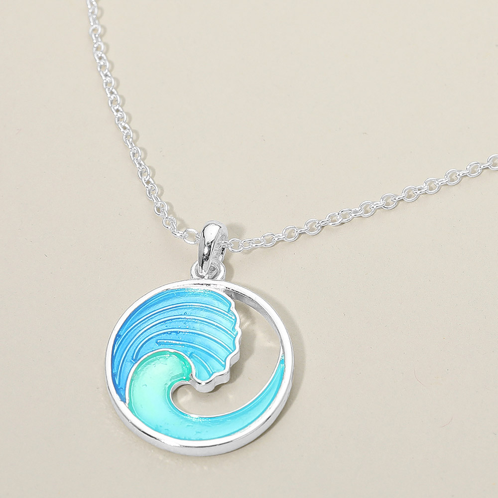 Details • Necklace Size : 16" + 3" L • Pendant Size : 1" X 1.25" • Made in Vietnam • Ocean wave swirl pendant necklace inspired by flowing tides and coastal energy. This elegant design features a dynamic circular wave motif that adds a calm yet eye catching touch to everyday outfits. Ideal for beach boutiques, resort shops, aquarium gift stores, and ocean themed collections, appealing to customers who love sea life, travel, and nature inspired jewelry. • Lead and Nickel Compliant