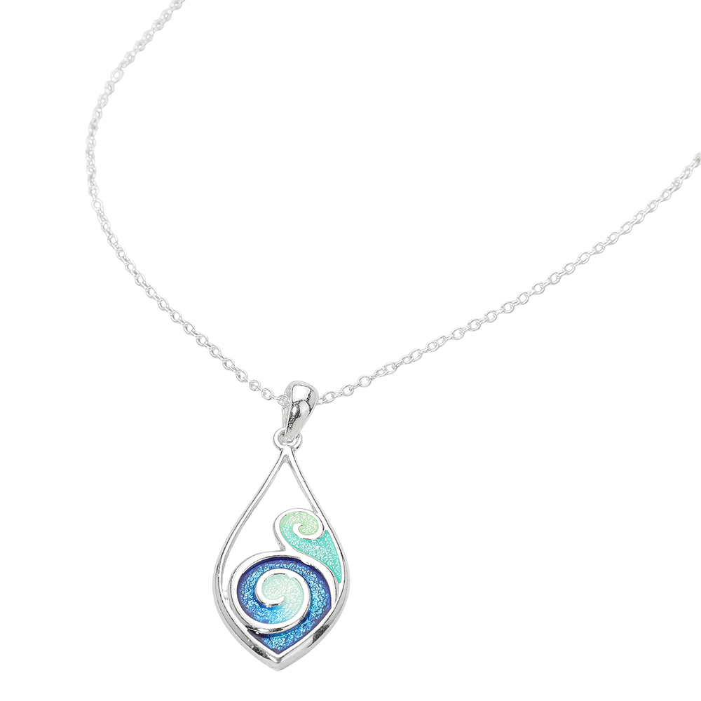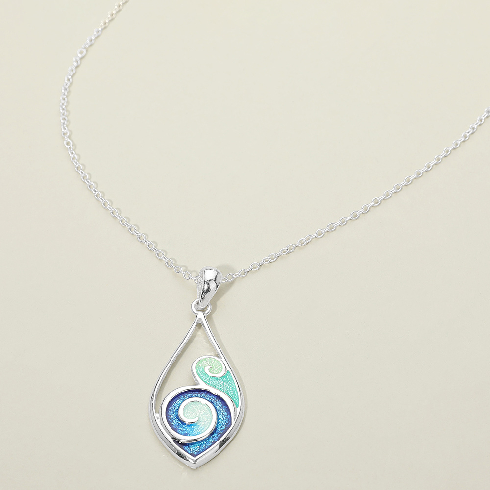 Details • Necklace Size : 18" + 3" • Pendant Size : 0.8" X 2" • Ocean wave swirl pendant necklace featuring a flowing, modern design that symbolizes movement and balance. A versatile jewelry piece ideal for everyday wear, gifting, or layering. Perfect for boutiques seeking elegant, nature-inspired statement necklaces with timeless appeal. • Lead and Nickel Compliant