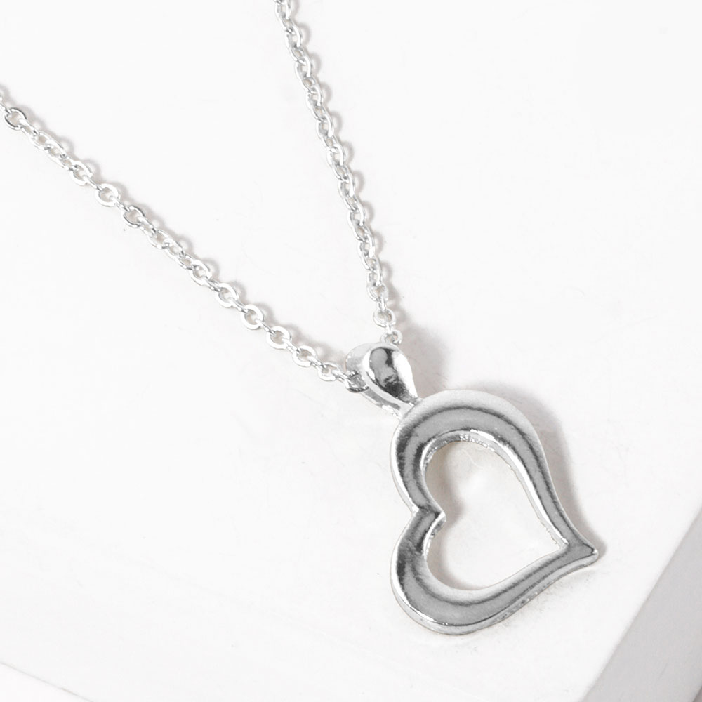 Details • Necklace Size : 15.5" + 2" L • Pendant Size : 0.6" X 0.8" • Elegant open heart pendant necklace featuring a smooth hollow heart charm on a delicate chain. A simple, meaningful accessory ideal for everyday wear or gifting, adding a touch of timeless style to any outfit. • Lead and Nickel Compliant