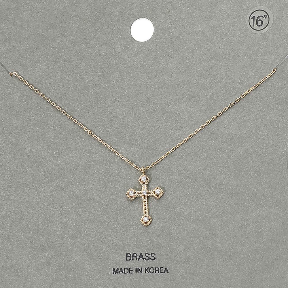 • This elegant cross pendant necklace features sparkling accent details that add refined shine to a classic silhouette. Designed for everyday wear, it offers a meaningful yet versatile look that pairs effortlessly with casual or dressy outfits. Ideal for layering or wearing alone, this timeless necklace makes a thoughtful gift and a strong addition to boutique and faith-inspired jewelry collections.