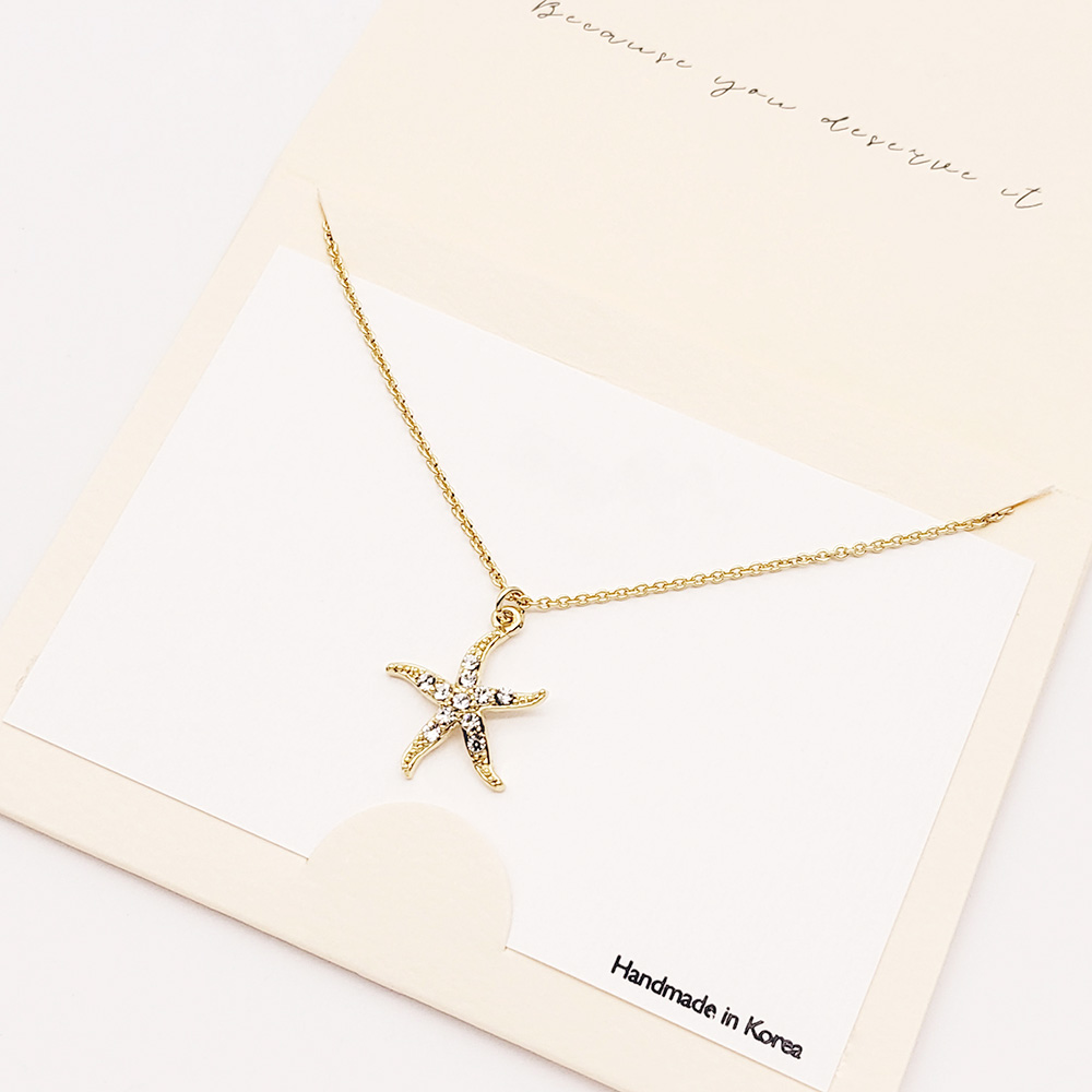 Rhinestone Embellished Starfish Pendant Necklace