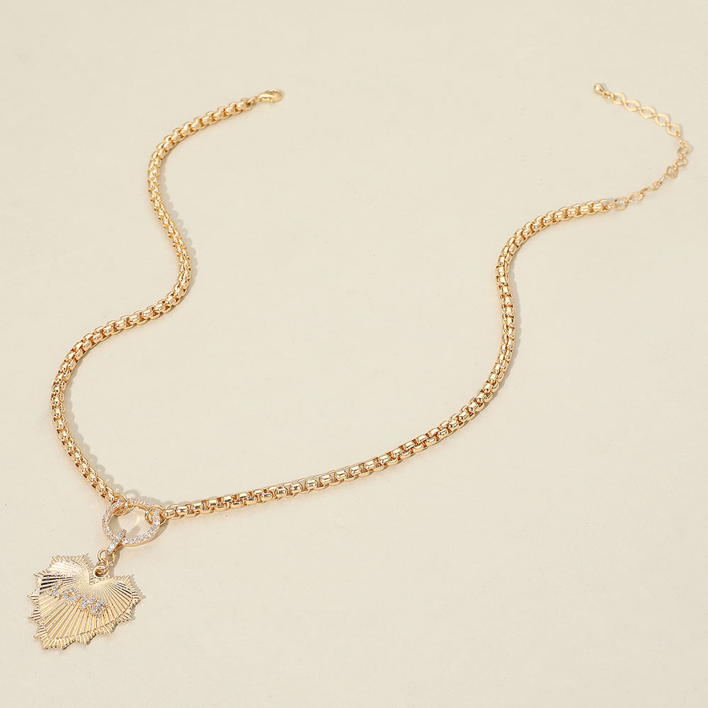 Rhinestone Paved Circle LOVE Message Accent Textured Metal Heart Pendant Necklace