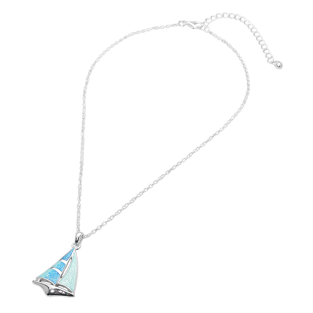 Details • Necklace Size : 16" + 3" L • Pendant Size : 0.9" X 1.5" • Made in Vietnam • Sailboat pendant necklace inspired by ocean adventures and coastal living. This charming design features a classic sailboat shape that adds a relaxed yet stylish touch to everyday looks. Perfect for beach boutiques, nautical themed gift shops, resort stores, and travel collections, appealing to customers who love sailing, seaside escapes, and ocean inspired jewelry. • Lead and Nickel Compliant