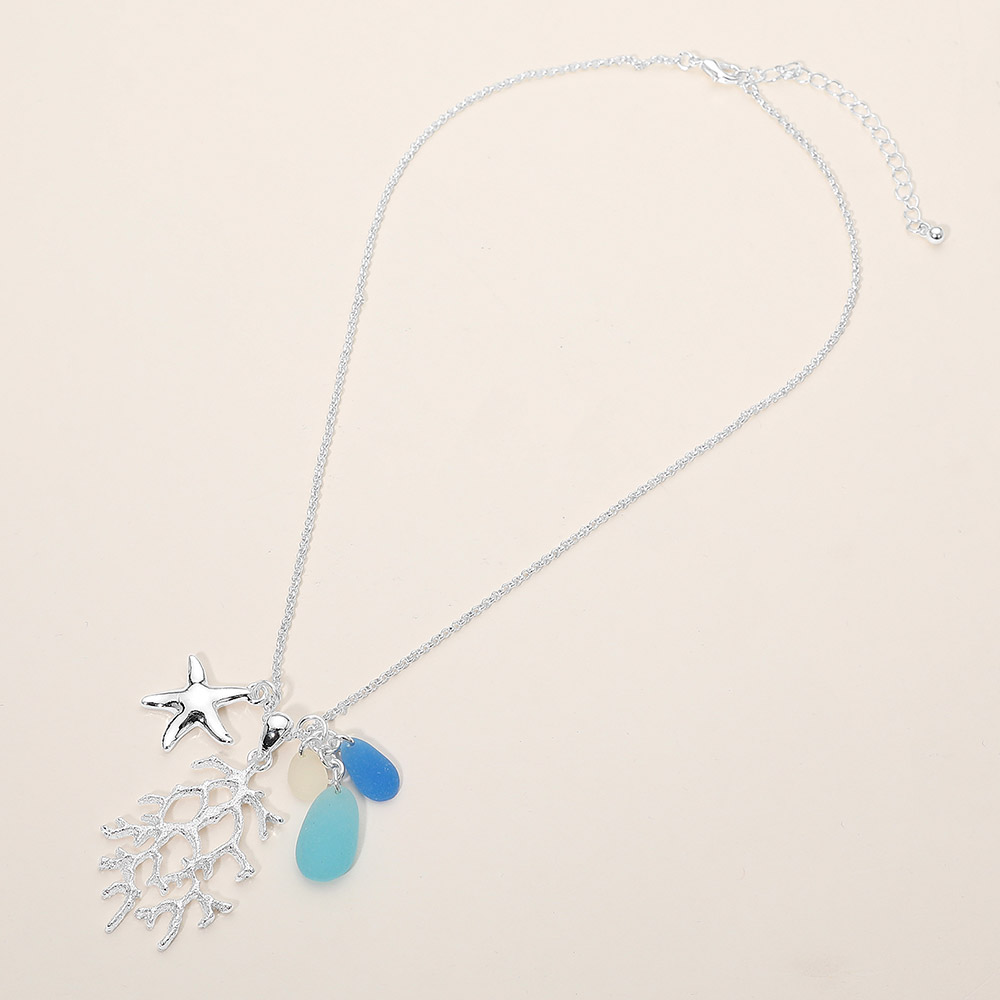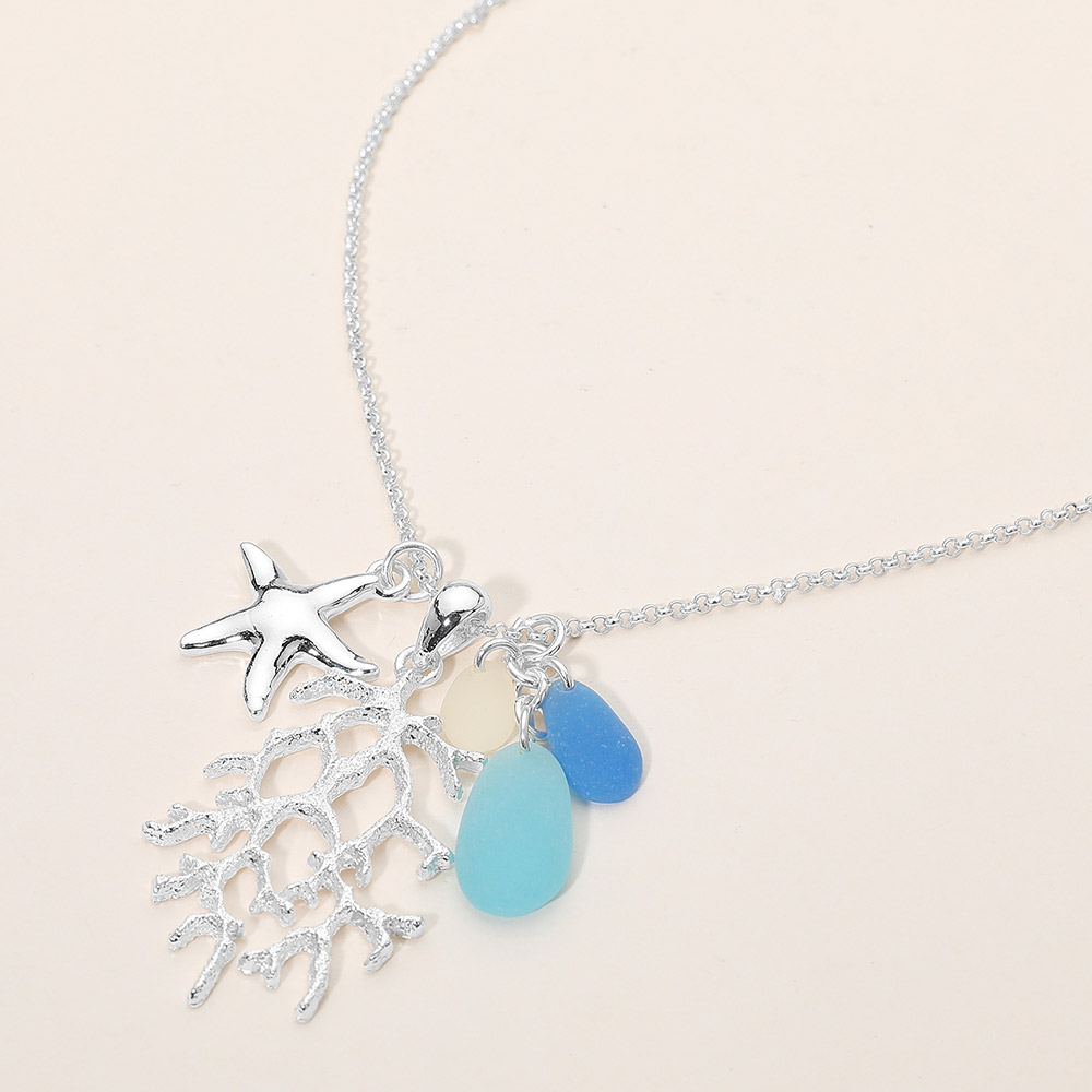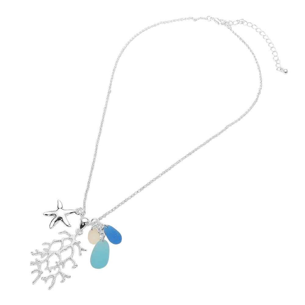 Sea Glass Starfish Coral Charm Pendant Necklace