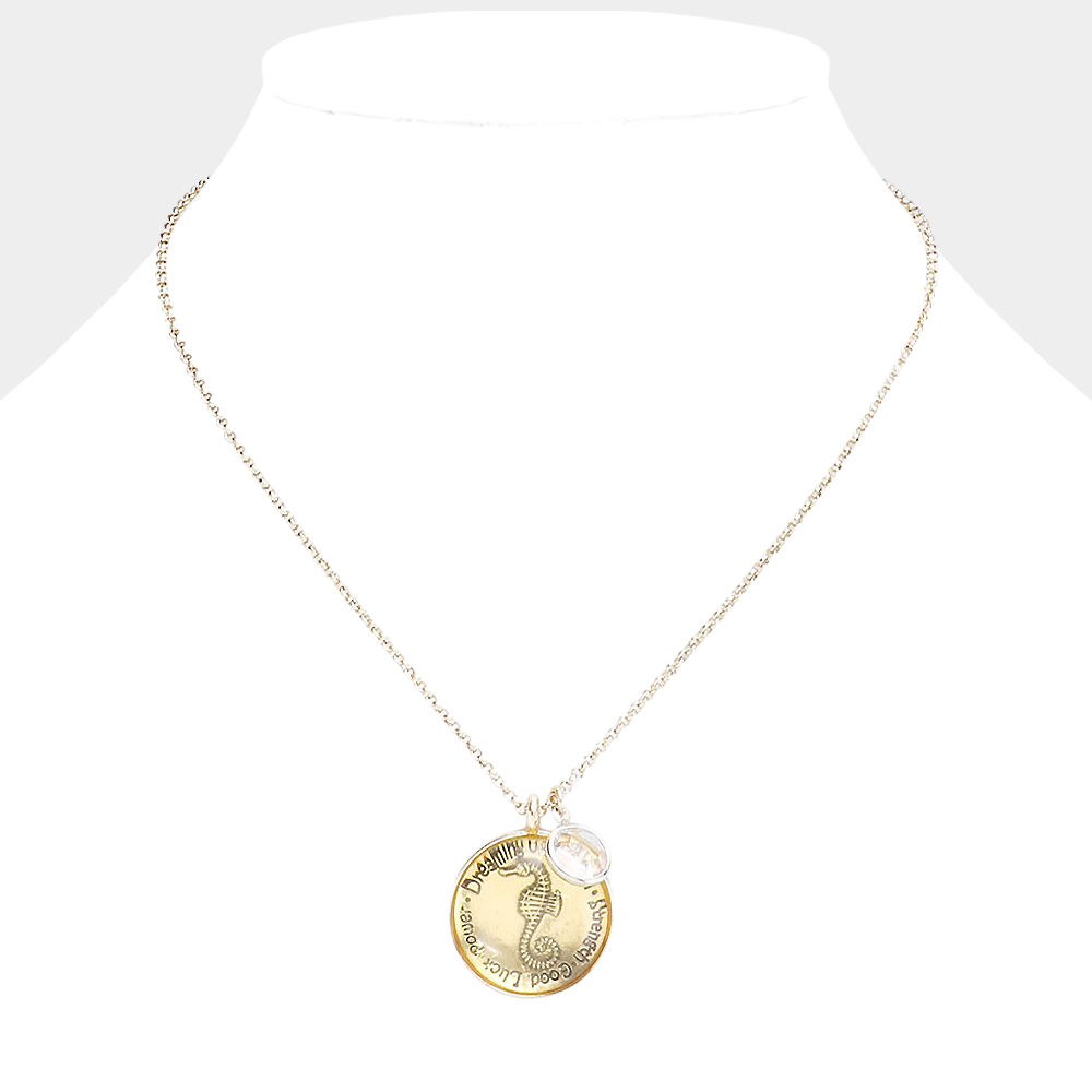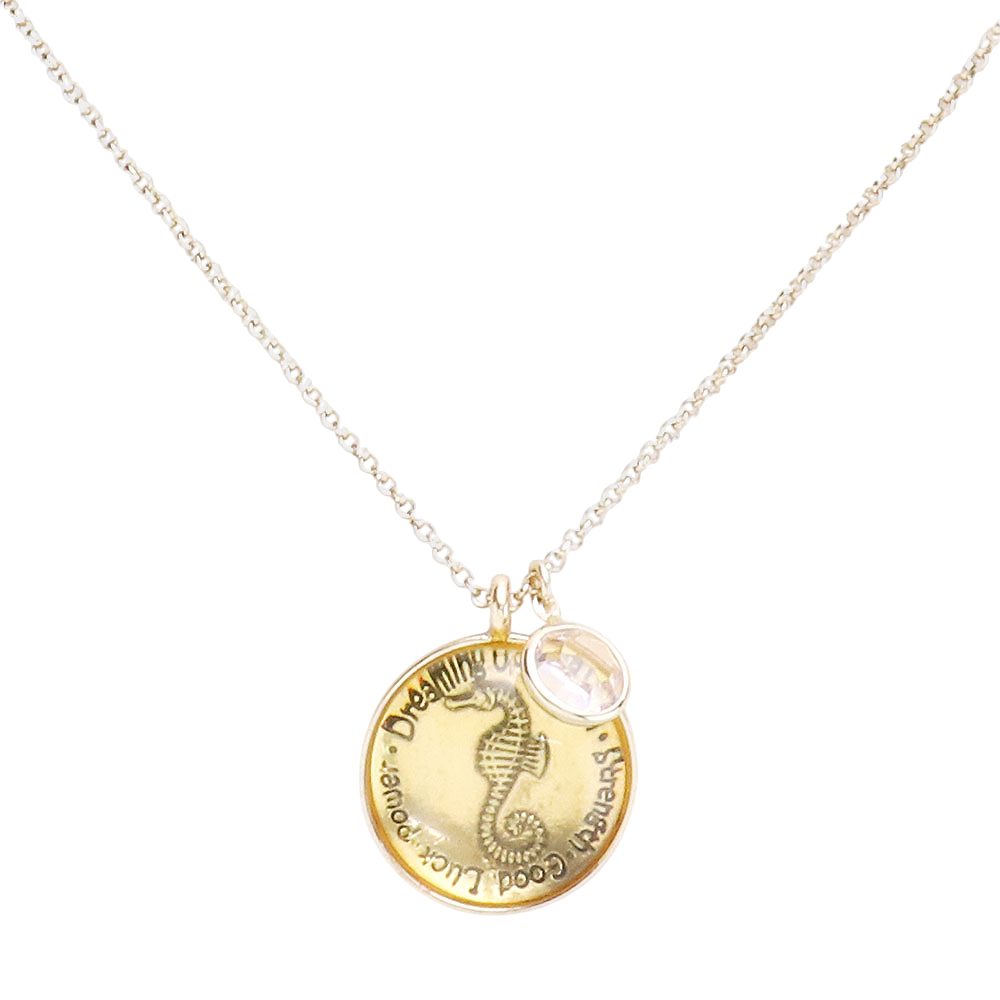 14K Gold Dipped CZ Stone Accent Seahorse Pendant Necklace