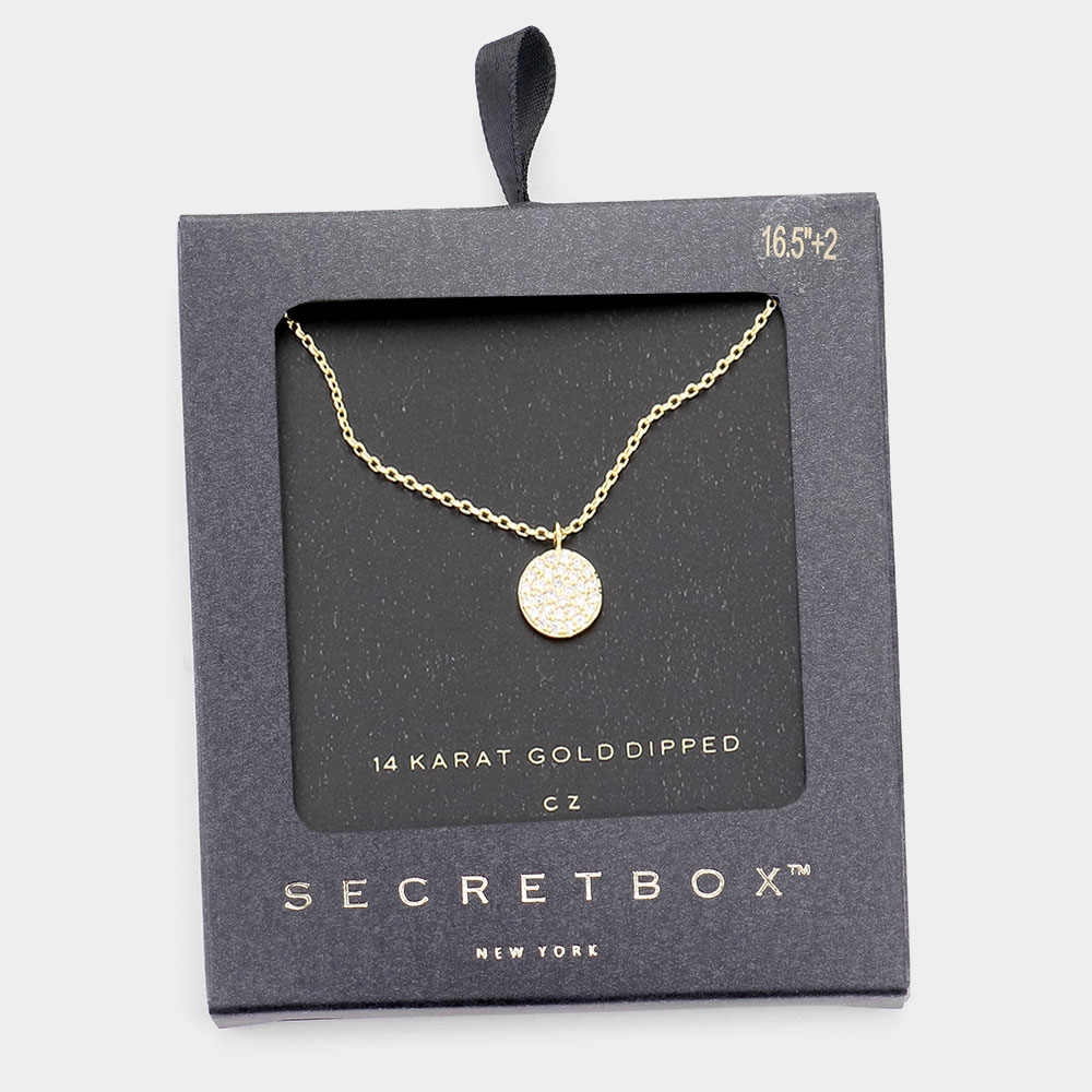 SECRET BOX_Sterling Silver Dipped CZ Round Pendant Necklace