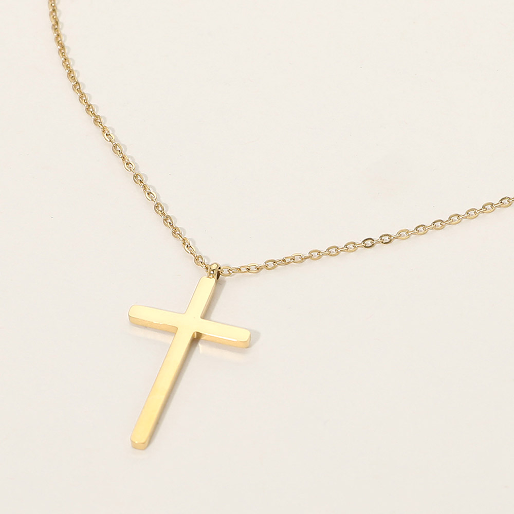 Details • Necklace Size : 15.5" + 2" L • Pendant Size : 0.6" X 1" • This minimal cross pendant chain necklace features a sleek, timeless silhouette designed for everyday wear or meaningful gifting. The simple cross charm hangs from a delicate chain with an adjustable fit, making it easy to layer or wear solo. A versatile accessory that adds subtle elegance and symbolic style to casual outfits, workwear, or special occasions. • Hypoallergenic • Stainless Steel