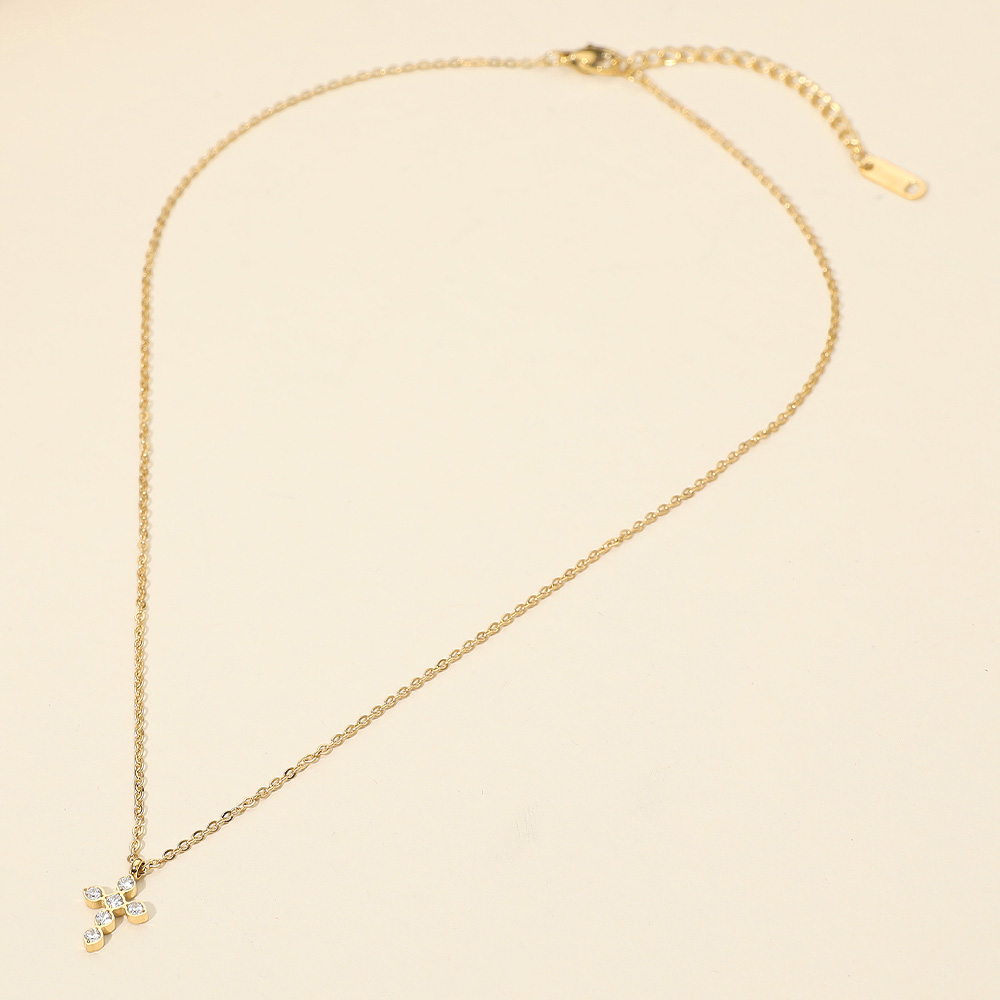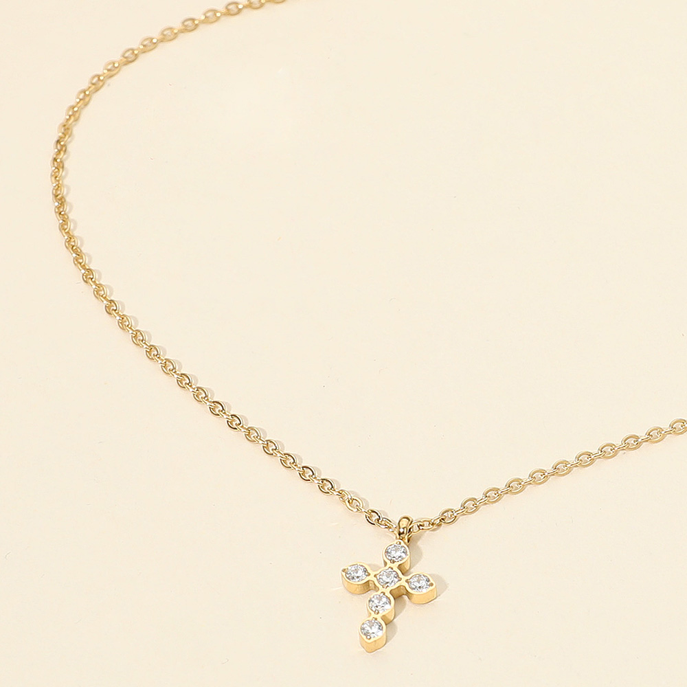 SECRET BOX_Stainless Steel Dainty Sparkling Cross Pendant Necklace
