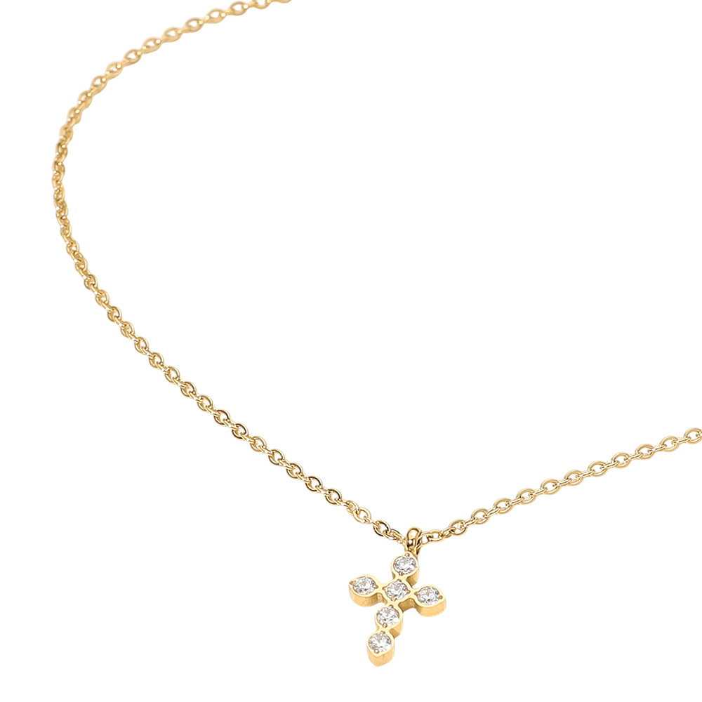 • Elegant cross pendant necklace featuring a delicate chain and shimmering details. A timeless accessory that adds a subtle yet meaningful touch of shine to any outfit, perfect for layering or wearing alone for a classic, refined look suitable for any occasion.