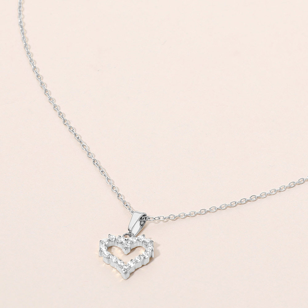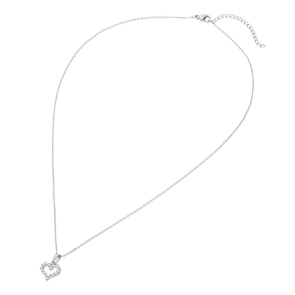 Details • Necklace Size : 17" + 2" L • Pendant Size : 0.4" X 0.6" • Elegant open heart pendant necklace designed with subtle sparkle for a timeless, romantic look. This delicate necklace layers beautifully or stands alone as a meaningful everyday accessory, making it a versatile choice for boutiques seeking classic yet giftable jewelry styles. • Hypoallergenic • Stainless Steel