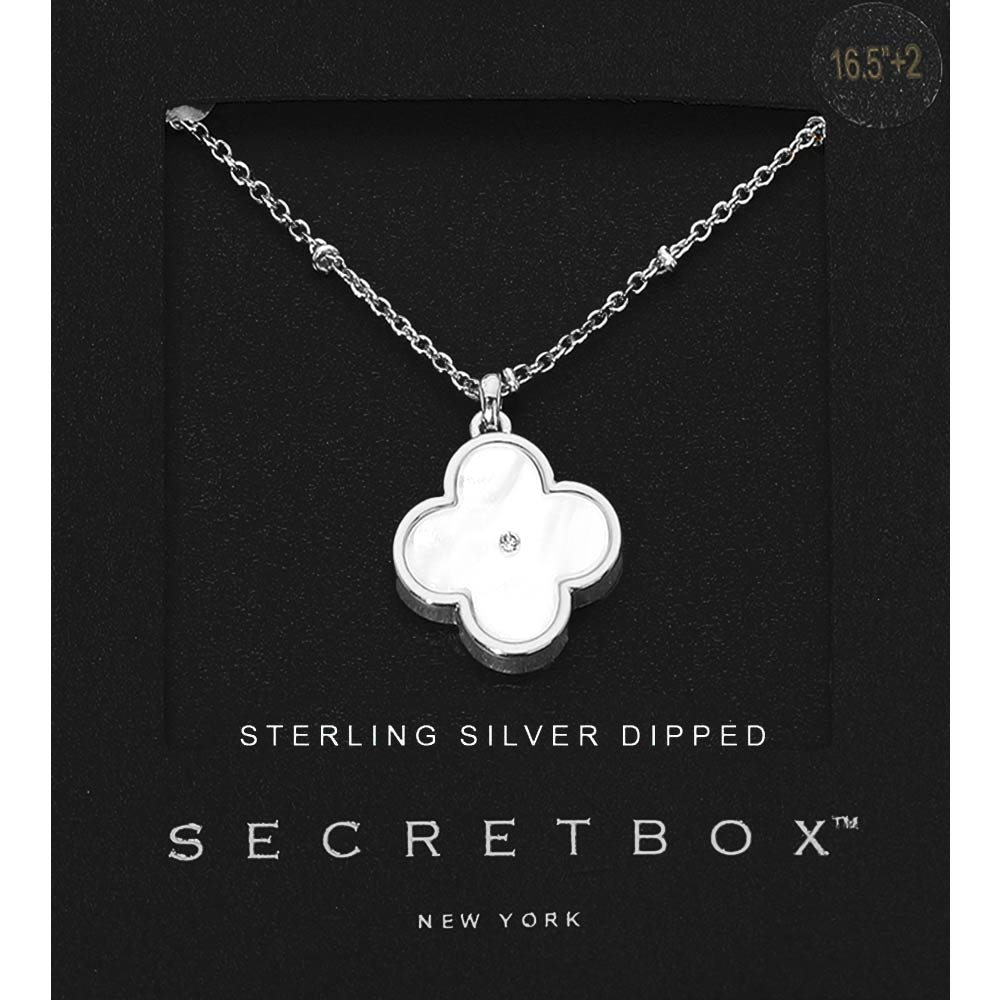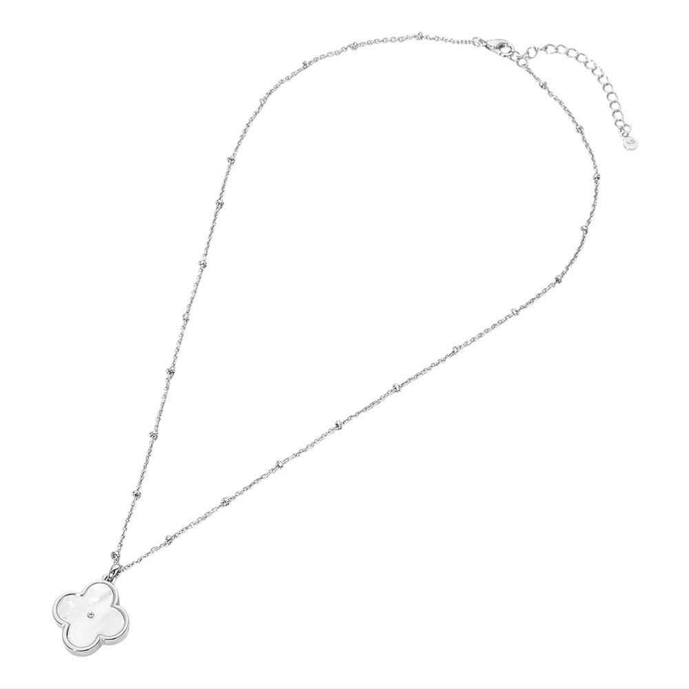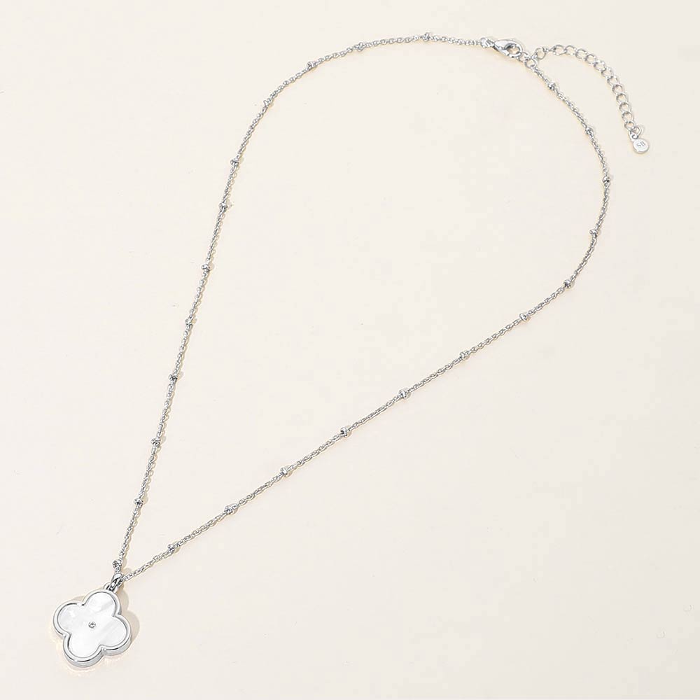 Details • Necklace Size : 16.5" + 2" L • Pendant Size : 0.6" X 0.8" • Elegant clover-shaped pendant necklace designed with a smooth, polished silhouette and subtle center accent. This refined piece offers timeless charm and everyday versatility, making it ideal for layering or solo wear. A thoughtful choice for gifting, boutique assortments, and customers seeking classic, symbolic jewelry with lasting appeal. • Sterling Silver Dipped