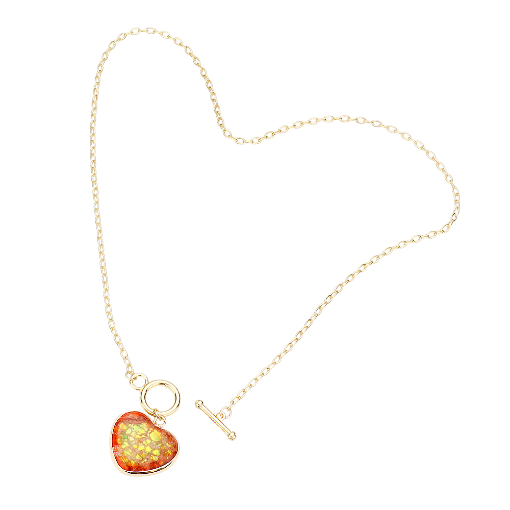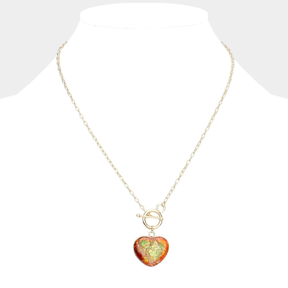 Chunky Wooden Heart Charm Station Layered Chain Necklace