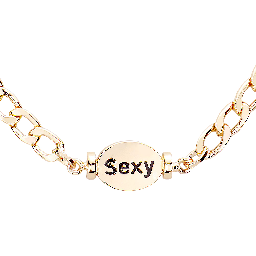 3PCS - SEXY Rhinestone Embellished Message Charm Metal Chain Anklets