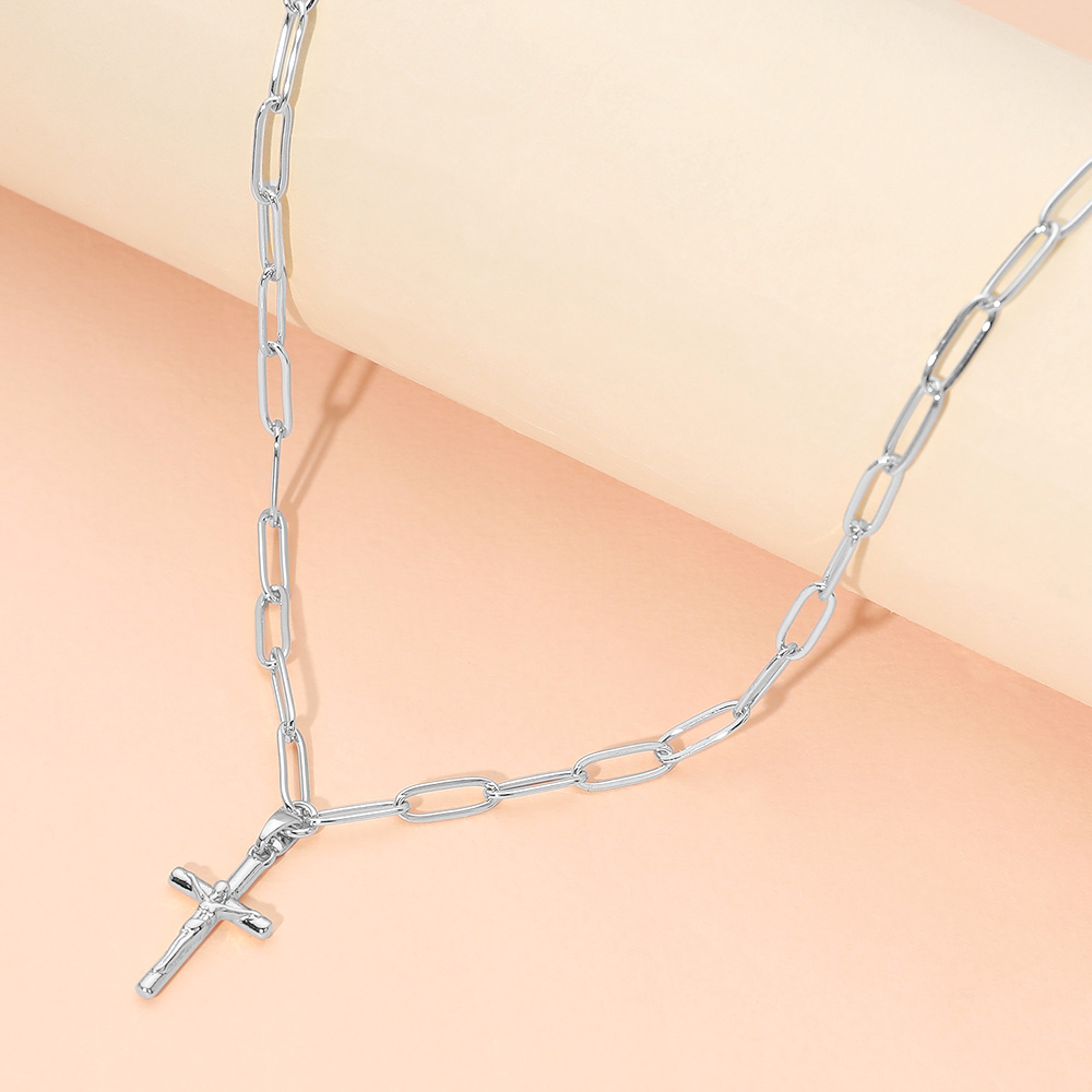 • This minimal cross pendant paperclip chain necklace features a sleek cross charm paired with a modern elongated link design for an understated, timeless look. Easy to style alone or layered, it offers everyday versatility and meaningful appeal, making it ideal for gifting, faith-inspired collections, and contemporary jewelry assortments.