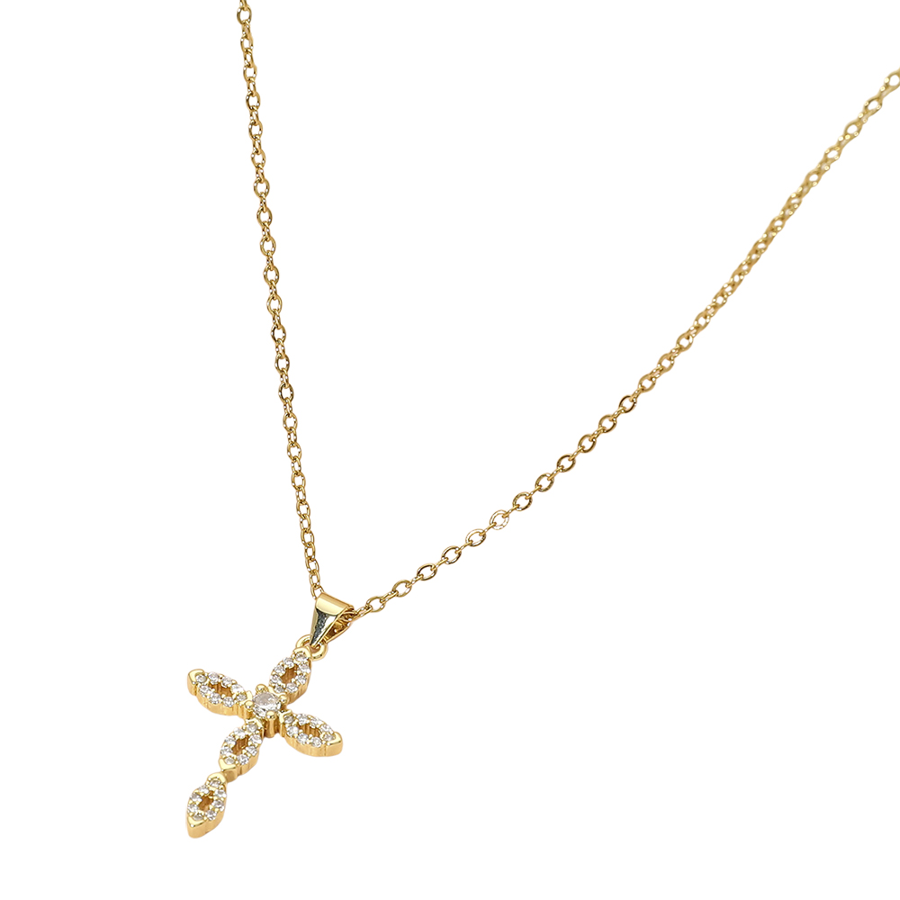 • This CZ cross pendant chain necklace features a delicately detailed cross charm accented with shimmering stones for a timeless and meaningful look. Designed for effortless everyday wear or layered styling, it offers elegant symbolism and versatile appeal ideal for gifting, boutiques, and curated jewelry collections.