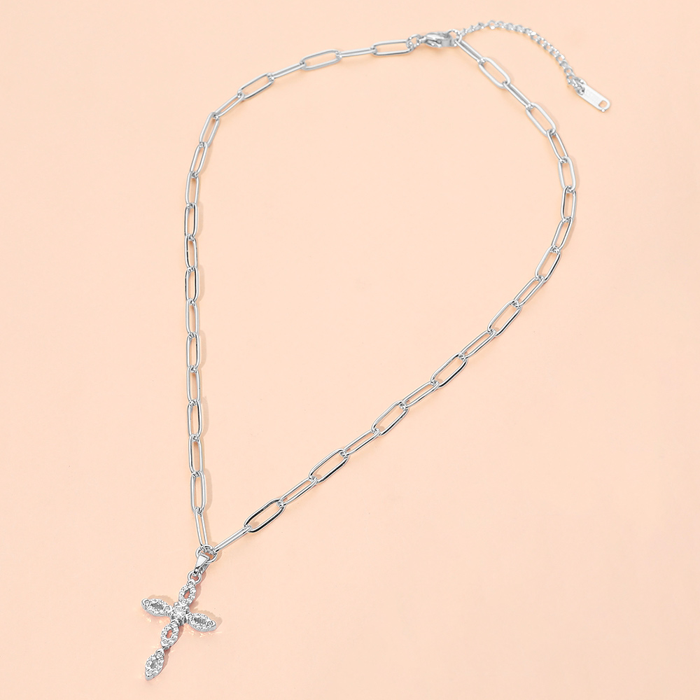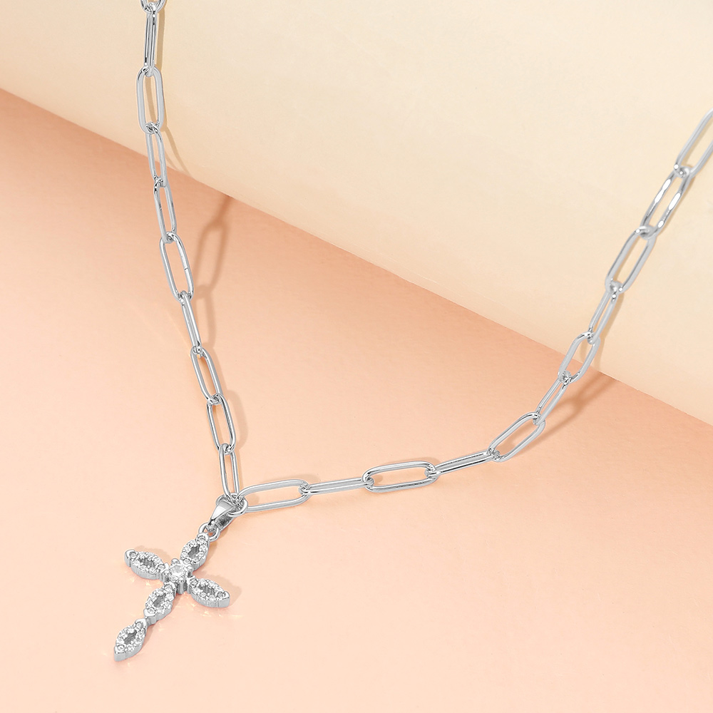 Stainless Steel CZ Cross Pendant Paperclip Chain Necklace Stainless Steel CZ Cross Pendant Paperclip Chain Necklace Stainless Steel CZ Cross Pendant Paperclip Chain Necklace