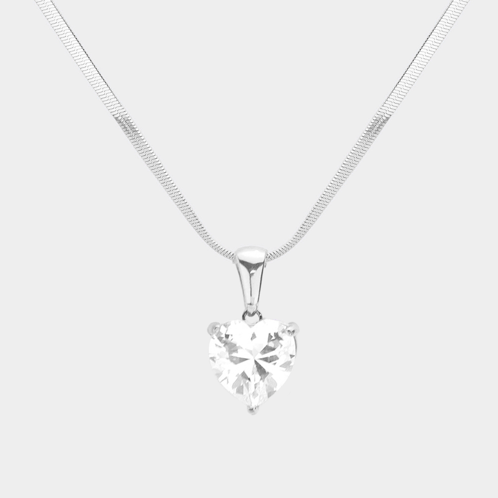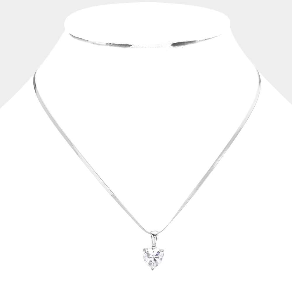 Stainless Steel CZ Heart Pendant Necklace