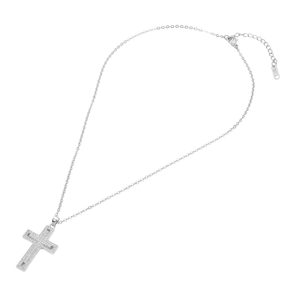 Details • Necklace Size : 15.5" + 2" L • Pendant Size : 0.75" X 1.3" • Elegant cross pendant necklace designed with a refined cz pave-style look that adds subtle sparkle and timeless meaning. Ideal for everyday wear, layering, or gifting, this versatile necklace suits faith-inspired collections and boutique displays while offering a balanced blend of symbolism and modern style for customers seeking meaningful yet wearable jewelry. • CZ Cubic Zirconia • Stainless Steel