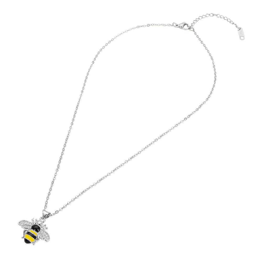 Details • Necklace Size : 15.5" + 2" L • Pendant Size : 0.8" X 0.8" • Charming bee pendant necklace designed to add playful elegance and symbolic meaning to everyday styling. This necklace features a detailed insect-inspired charm that brings personality, balance, and trend appeal. Easy to layer or wear alone, it’s a versatile accessory suited for casual outfits, gifting, and boutique assortments seeking unique, eye-catching jewelry. • CZ Cubic Zirconia • Stainless Steel