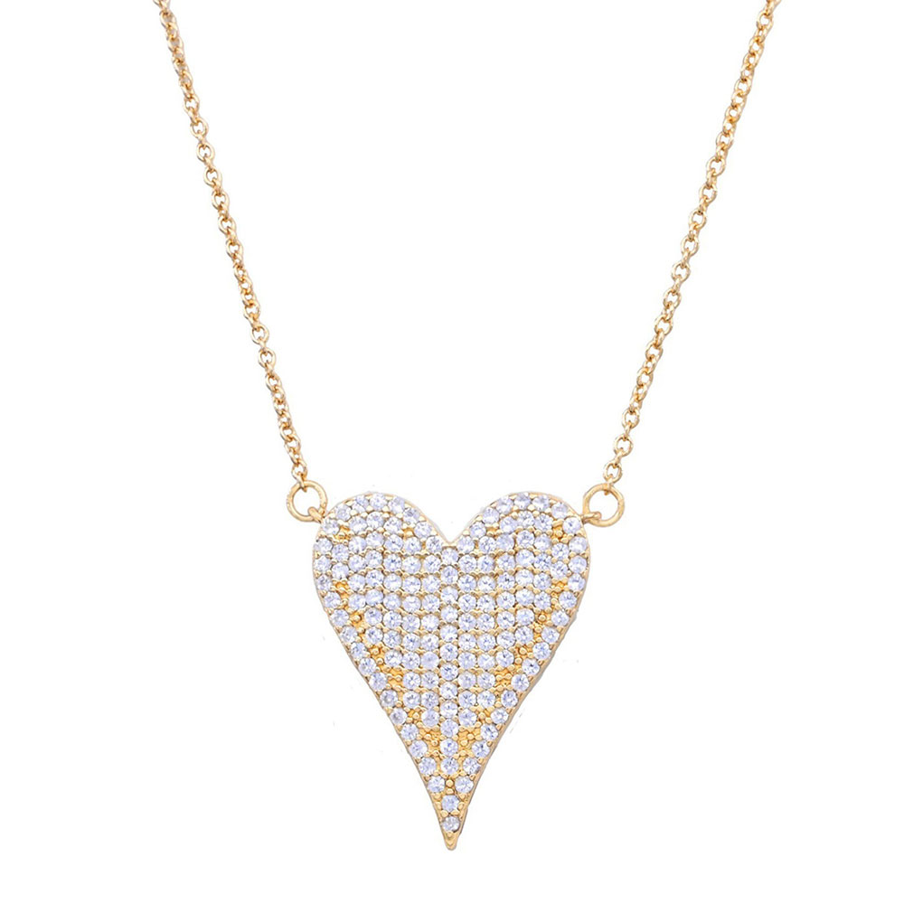 Stainless Steel CZ Stone Paved Heart Pendant Necklace