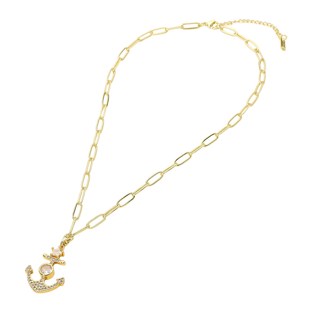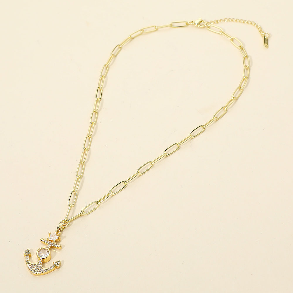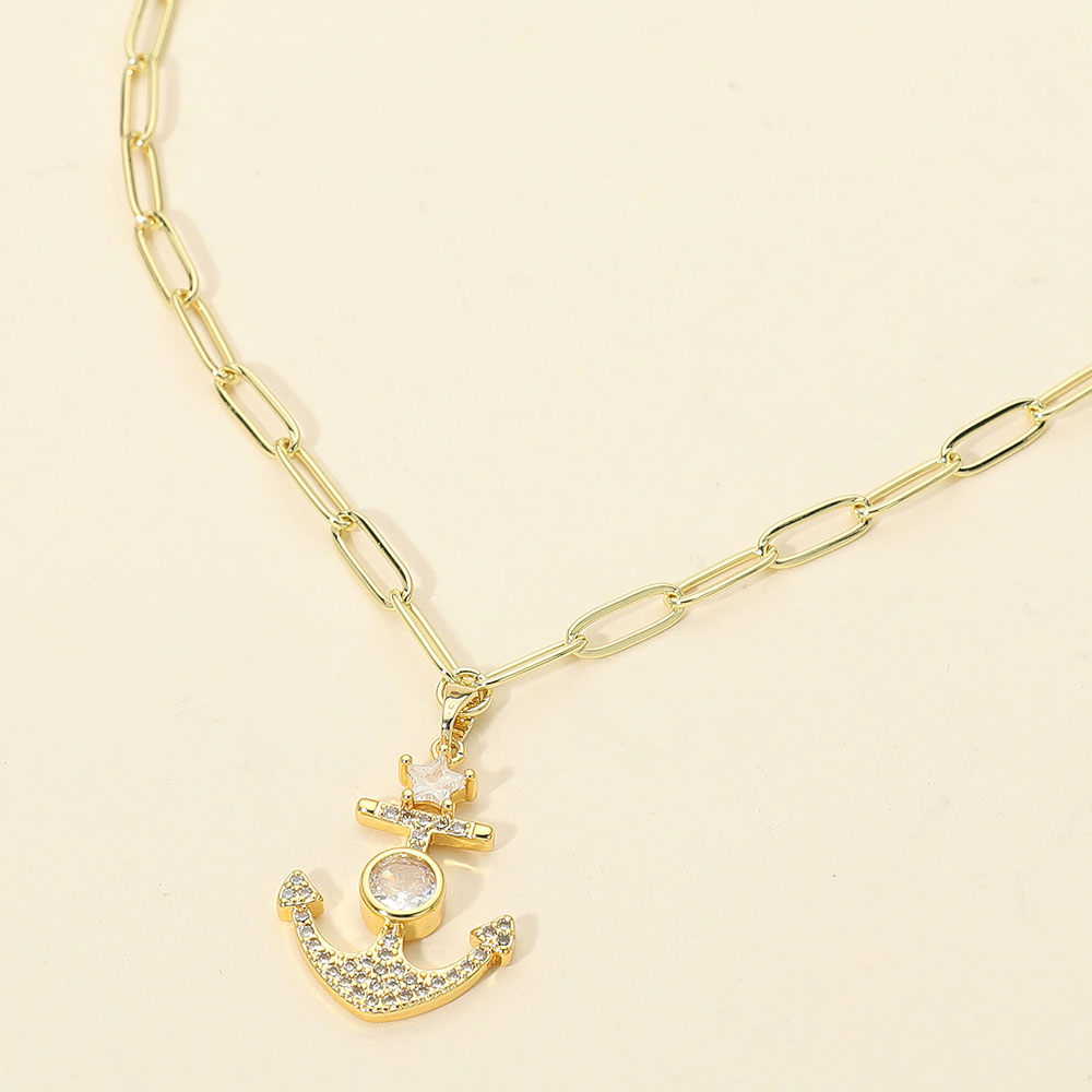 • Statement anchor charm necklace featuring a bold link chain and a symbolic anchor design accented with sparkling details. This necklace represents strength, stability, and modern style, making it ideal for everyday wear, layering, or gift assortments. A versatile fashion accessory that appeals to customers seeking meaningful, trend-forward jewelry pieces with strong visual impact.