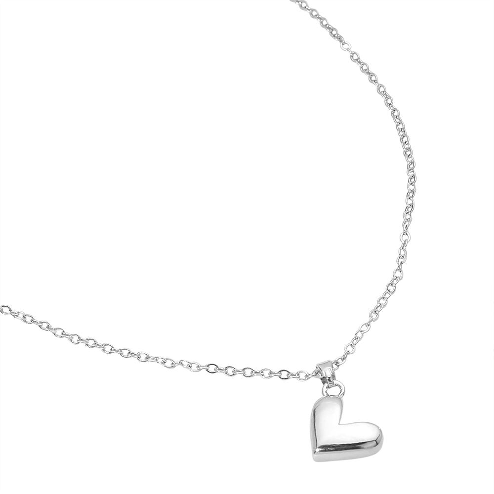 Details • Necklace Size : 15.5" + 2.25" L • Pendant Size : 0.5" X 0.75" • This minimal heart pendant chain necklace features a smooth heart charm suspended from a delicate classic chain for an elegant, everyday look. Designed for effortless layering or solo wear, it delivers timeless appeal, making it ideal for gifting, boutique displays, and modern jewelry collections. • Stainless Steel