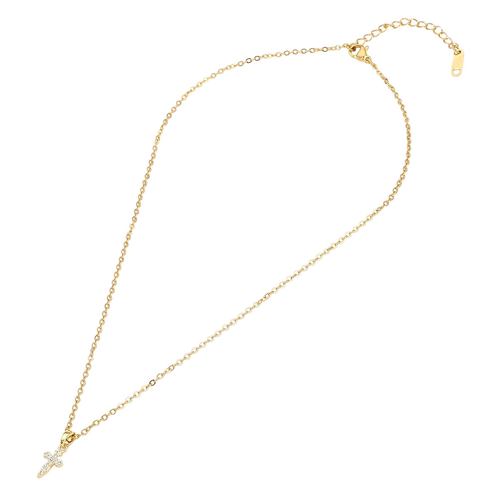 Details • Necklace Size : 15.5" + 2" L • Pendant Size : 0.25" X 0.7" • Delicate mini cross pendant necklace designed with a refined cz pave-inspired look for subtle sparkle and everyday elegance. Ideal for layering or wearing alone, this timeless necklace appeals to customers seeking meaningful jewelry with a modern, minimal feel, making it a versatile addition to boutique, gift, and faith-inspired accessory collections. • CZ Cubic Zirconia • Stainless Steel