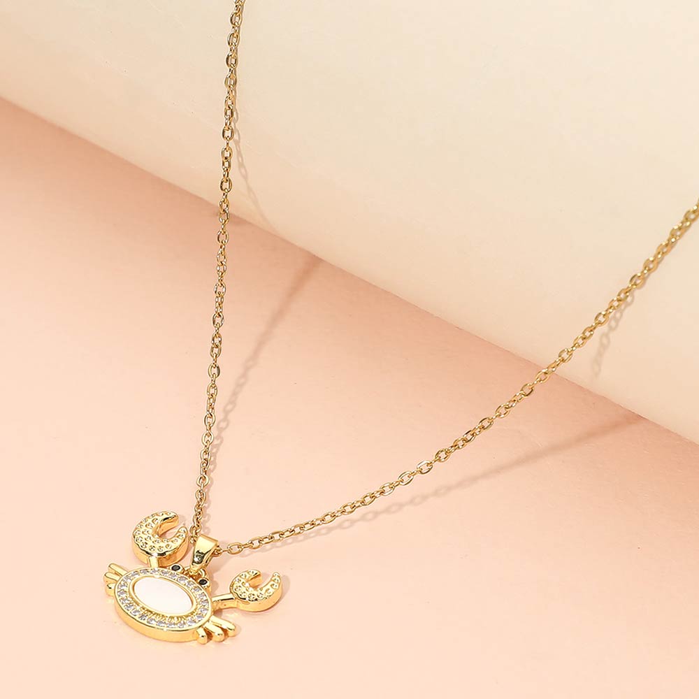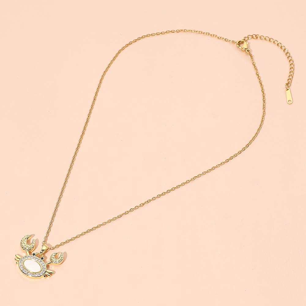 Stainless Steel Mother of Pearl CZ Stone Paved Crab Charm Pendant Paperclip Chain Necklace