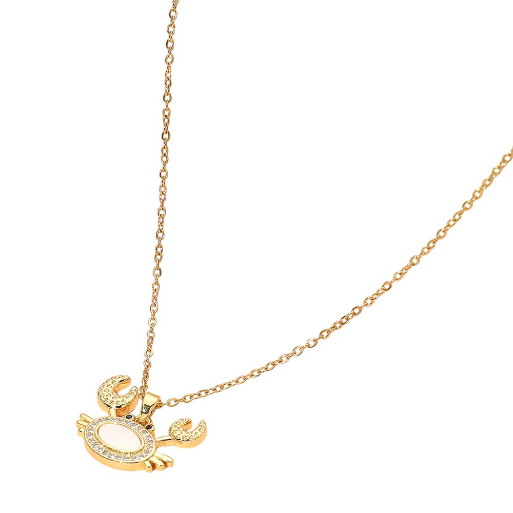 Details • Necklace Size : 15.75" + 2.25" L • Pendant Size : 0.9" X 0.7" • This crab charm link chain pendant necklace features a playful ocean-inspired design that adds character to everyday outfits. Ideal for seaside shops, resort collections, summer gifting, and themed displays, it offers a stylish statement piece customers can wear alone or layered. • CZ Cubic Zirconia • Stainless Steel
