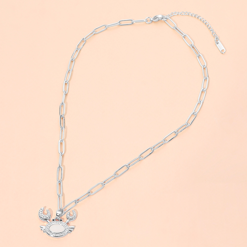 Details • Necklace Size : 15.75" + 2.25" L • Pendant Size : 0.9" X 0.7" • This crab charm link chain pendant necklace features a playful ocean-inspired design that adds character to everyday outfits. Ideal for seaside shops, resort collections, summer gifting, and themed displays, it offers a stylish statement piece customers can wear alone or layered. • CZ Cubic Zirconia • Stainless Steel