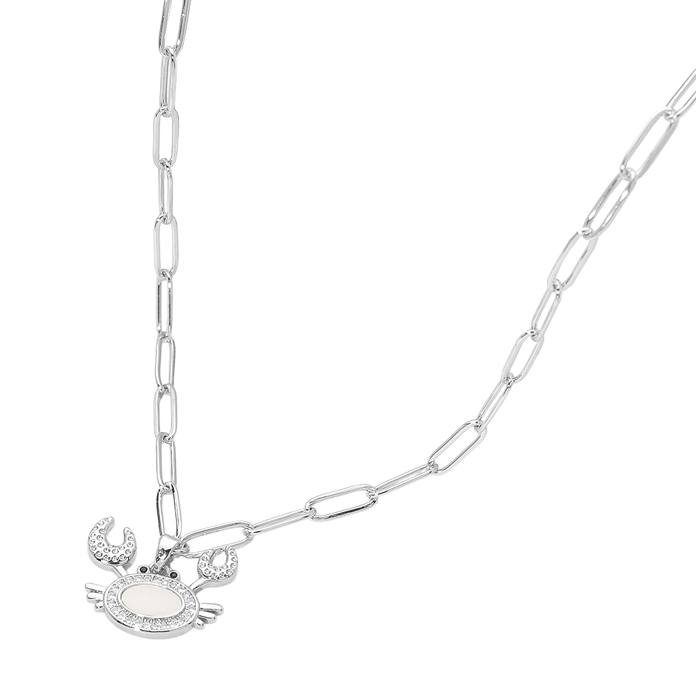 Stainless Steel Mother of Pearl CZ Stone Paved Crab Charm Pendant Paperclip Chain Necklace