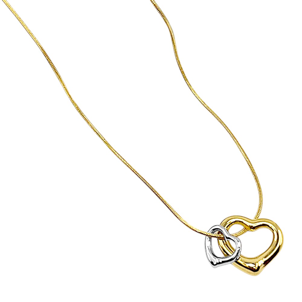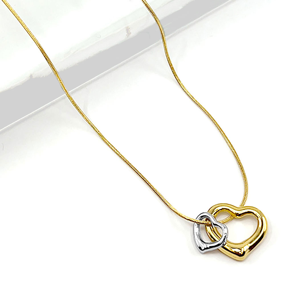 Stainless Steel Two Tone Double Open Heart Pendant Necklace