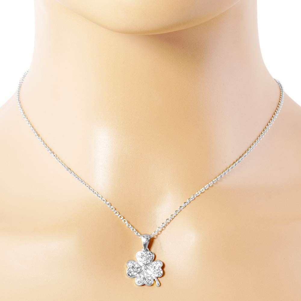 Stone Paved Clover Pendant Necklace