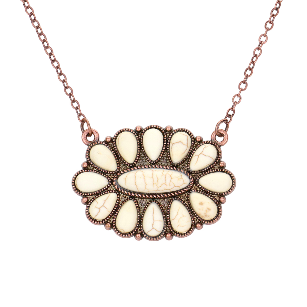 Teardrop Oval Natural Stone Cluster Pendant Necklace