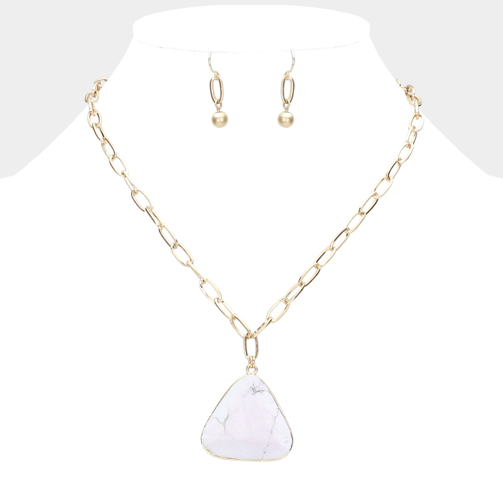 Marbled Round Shaped Beads Pearl Beaded Necklace