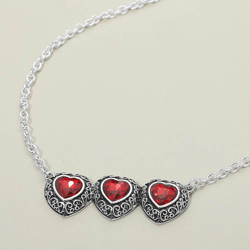 • Showcase romantic style with this triple heart pendant necklace featuring detailed framed accents on a delicate chain. A charming statement piece ideal for everyday wear or special occasions, offering graceful shine, balanced design, and comfortable lightweight appeal.