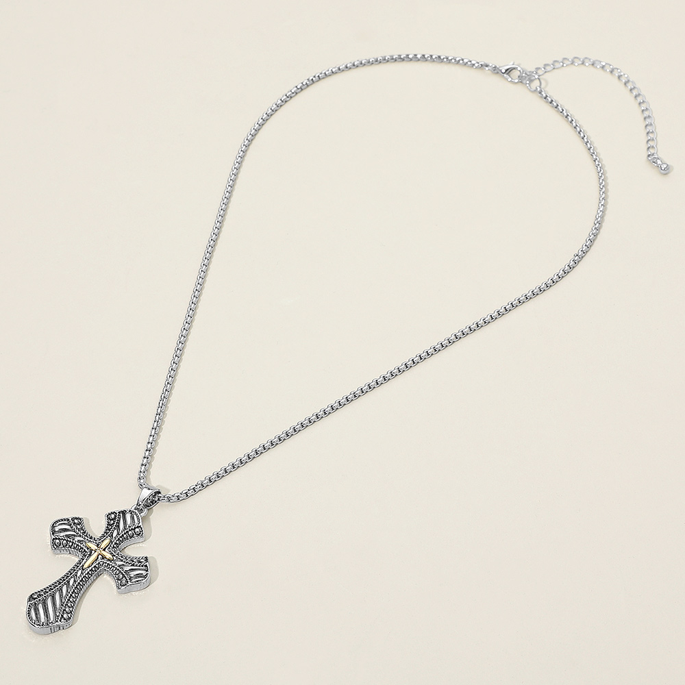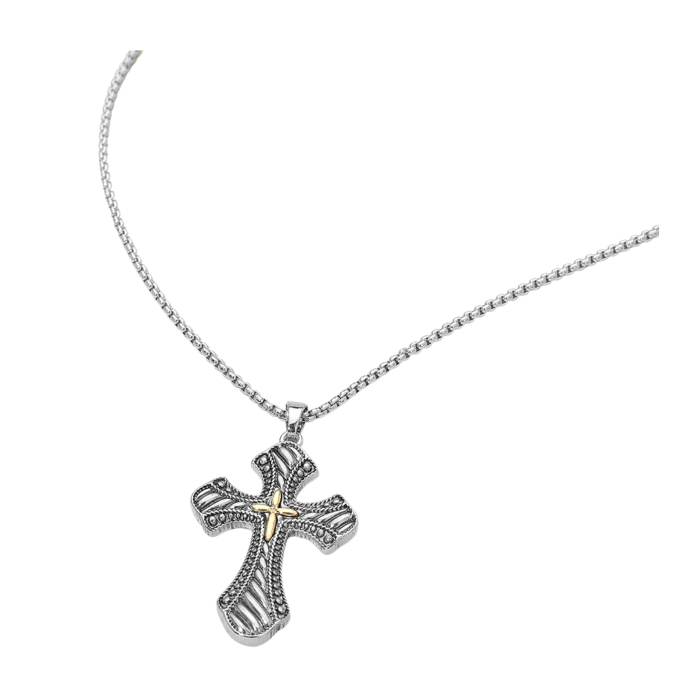 Details • Necklace Size : 17" + 3.25" L • Pendant Size : 1.1" X 1.8" • A finely detailed cross pendant paired with a sleek chain for a timeless, elegant look. Ideal for meaningful gifting or everyday wear, offering standout texture and classic style that layers beautifully or shines worn alone. • Lead and Nickel Compliant