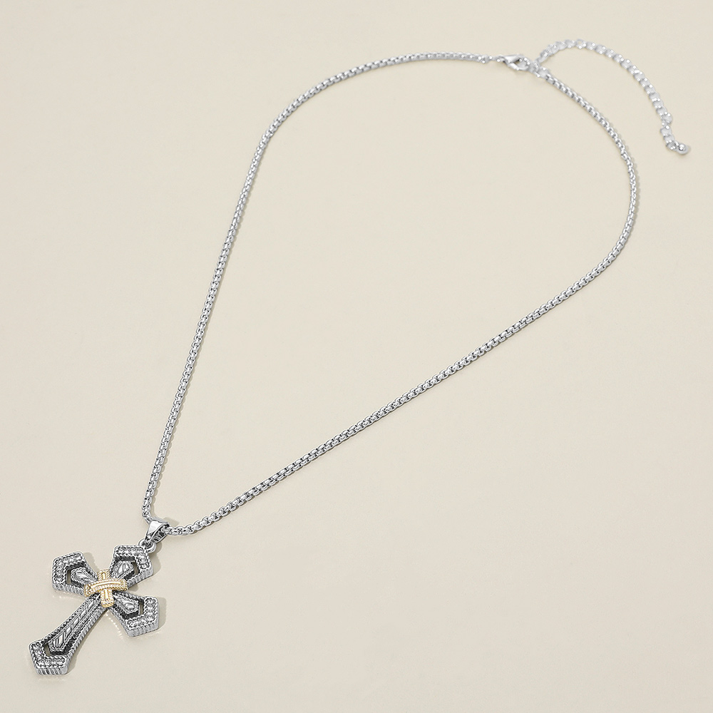 Details • Necklace Size : 17.75" + 3" L • Pendant Size : 1.2" X 1.9" • A bold cross pendant featuring intricate detailing paired with a sleek chain for a refined statement look. Perfect for everyday wear or heartfelt gifting, offering timeless appeal that layers beautifully or stands out worn alone. • Lead and Nickel Compliant