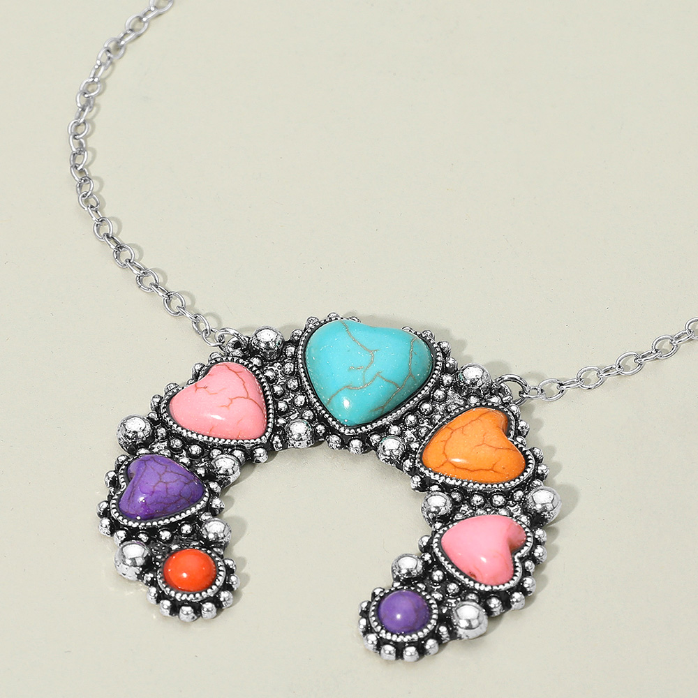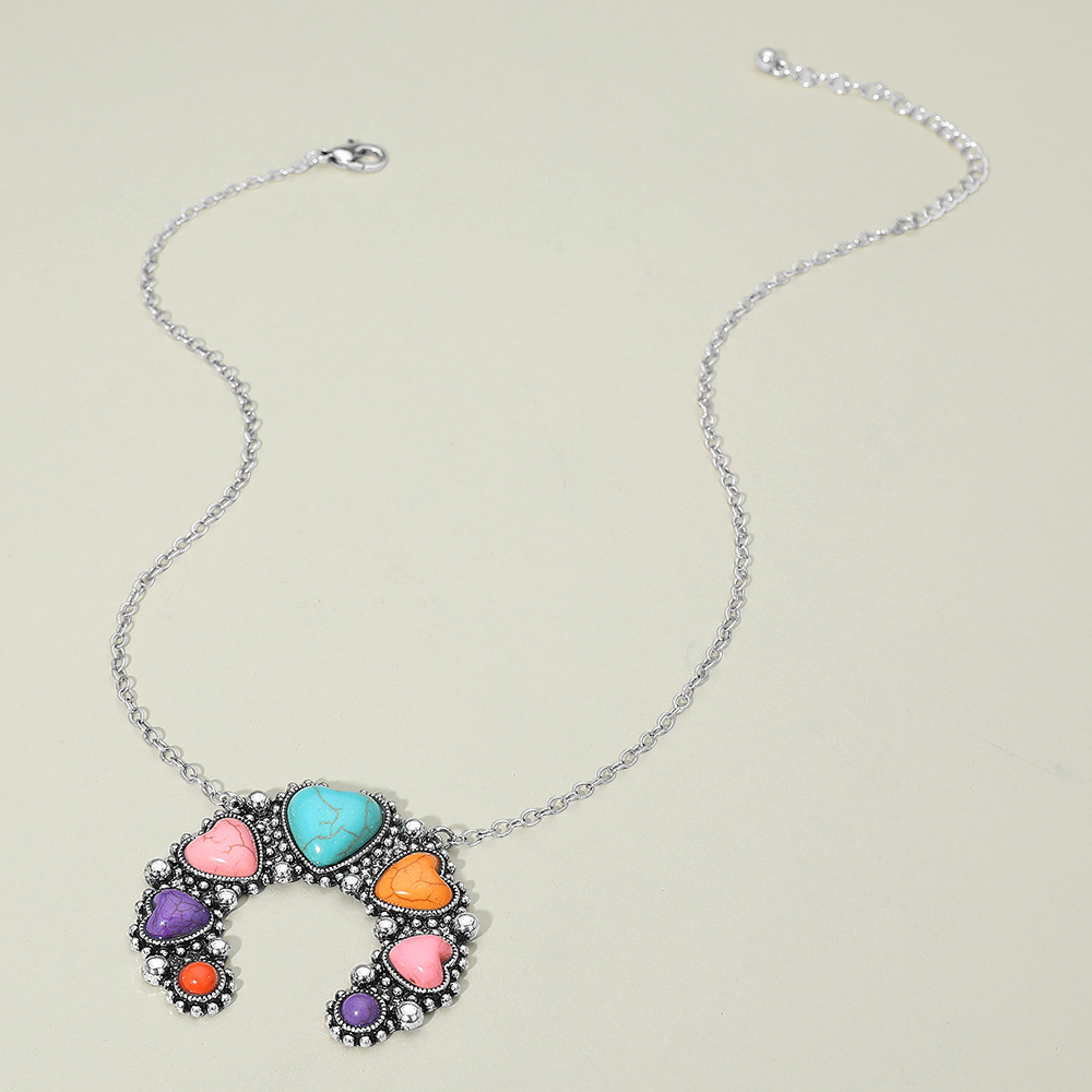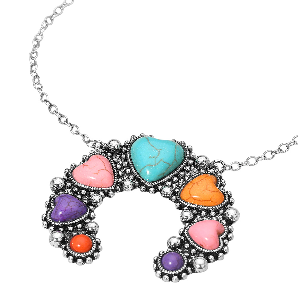 • Show off your vibrant spirit with this boho heart gemstone pendant necklace. Adorned with colorful stones in a vintage-inspired crescent setting, it adds artistic charm and bold personality to any outfit—perfect for free-spirited, statement-making style.